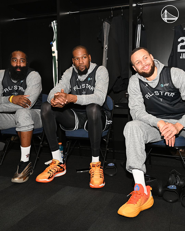 庫里對KD的三分球 他在同一框架上一直很喜歡 而且全明星訓練非常有用
